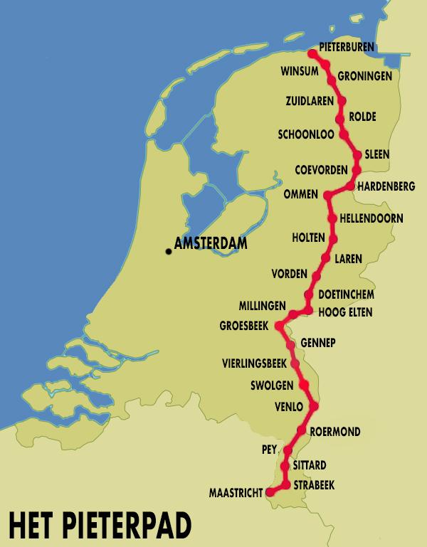 Het Pieterpad is een van de langste lange-afstands-wandelpaden in Nederland, in totaal exact 487 kilometer. Het Pieterpad loopt van Pieterburen in Groningen (het uiterste noorden) naar de St-Pieter in Limburg (zuidelijkste punt van Nederland). Het pad is in 1978 "ontworpen" door Toos Goorhuis en Bertje Jens. Nog altijd is deze tocht een van de populairste meerdaagse wandelroute. Bekijk de links op deze pagina voor de overnachtingen langs de route.